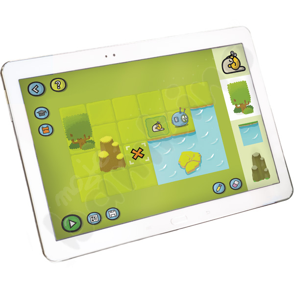 Aplikacja Scottie Go! EDU Może być zainstalowana na 3 urządzeniach przy użyciu kodu licencyjnego zawartego w pudełku, umożliwiając wykonanie wszystkich 91 zadań z gry. Aplikacja służy do wyznaczenia zadania do rozwiązania, zeskanowania ułożonych z klocków programów i sprawdzenia ich poprawności. Po zainstalowaniu aplikacji na urządzeniu, uczeń wybiera zadanie i układa na planszy program z klocków, który jest jego rozwiązaniem. Następnie skanuje go wykonując zdjęcie lub rejestrując wideo. Jeśli program został napisany poprawnie i Scottie wykona zadanie, na ekranie pojawią się 3 gwiazdki. Jeżeli na ekranie pojawią się 2 lub 1 gwiazdka, oznacza to, że ułożony program może być krótszy (należy go zoptymalizować). Gdy zadanie zostanie wykonane nieprawidłowo będzie można ponownie ułożyć jego rozwiązanie.