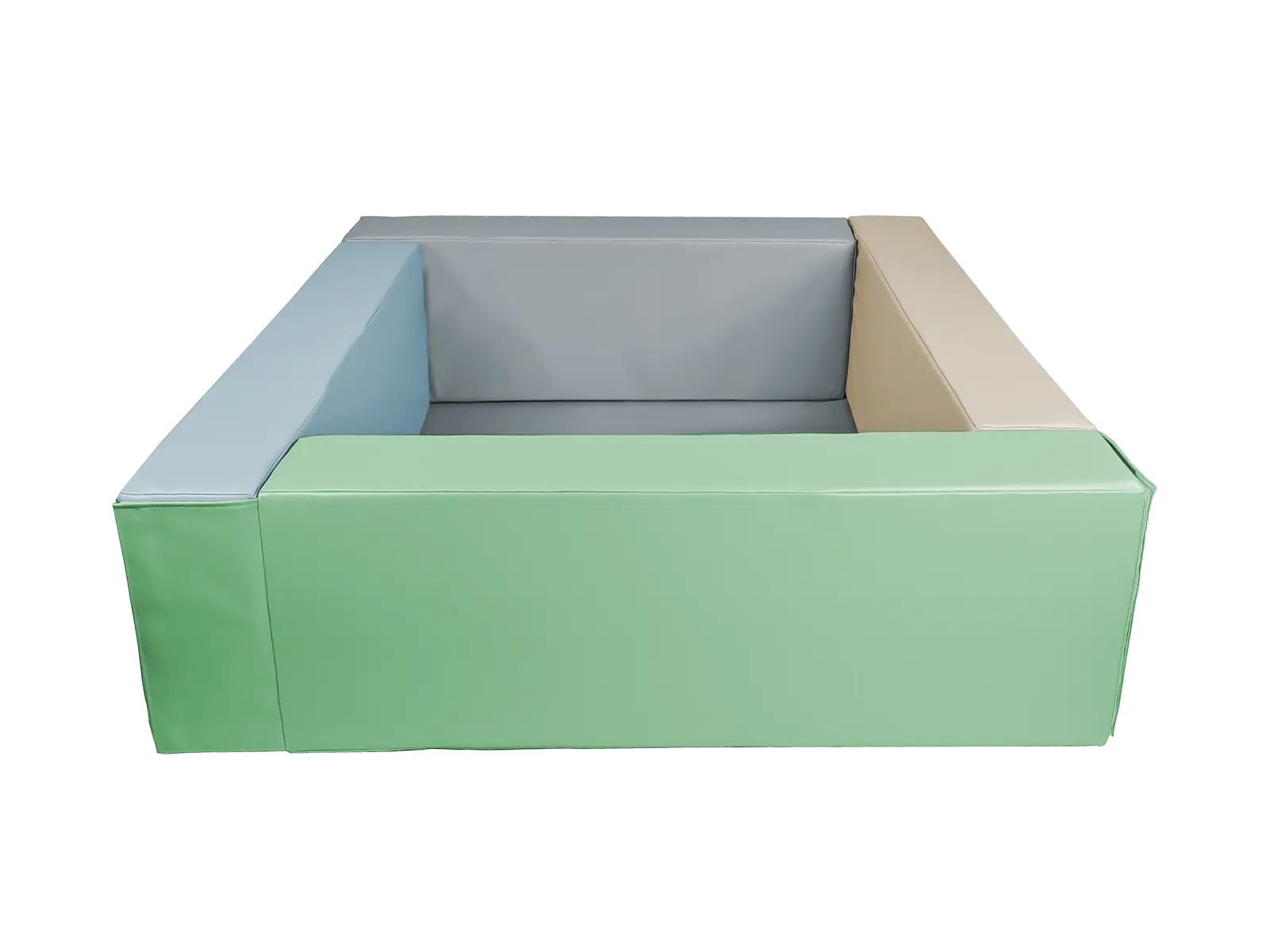 Basen kwadratowy z ekoskóry – wykonany jest z pianki poliuretanowej pokryty materiałem z powłoką PCV przeznaczonego dla wyrobów medycznych, dzięki czemu jest bardzo łatwy w czyszczeniu oraz dezynfekcji. Możliwa personalizacja koloru basenu.
