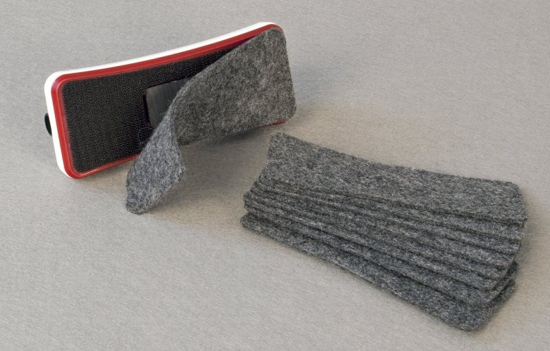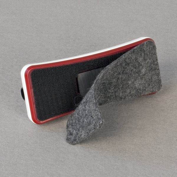 Trwała i estetyczna obudowa, wymienne wkłady filcowe przyczepiane na rzep. Wbudowany magnes pozwala łatwo przytwierdzić czyścik w dowolnym miejscu tablicy.