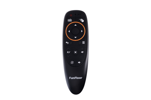 Dzięki zdalnemu sterowaniu, obsługa podłogi FunFloor staje się jeszcze prostsza – wystarczy kilka kliknięć, aby zmienić grę, uruchomić aplikację edukacyjną czy dostosować ustawienia wyświetlania. Pilot działa bez opóźnień, a jego stabilne połączenie bezprzewodowe gwarantuje płynne reagowanie systemu nawet z większej odległości.