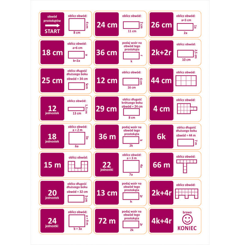 Graj w obwód z *Domino geometryczne – obwód prostokąta – część 1*! Gra do geometrii. Trwała. Zamów teraz!