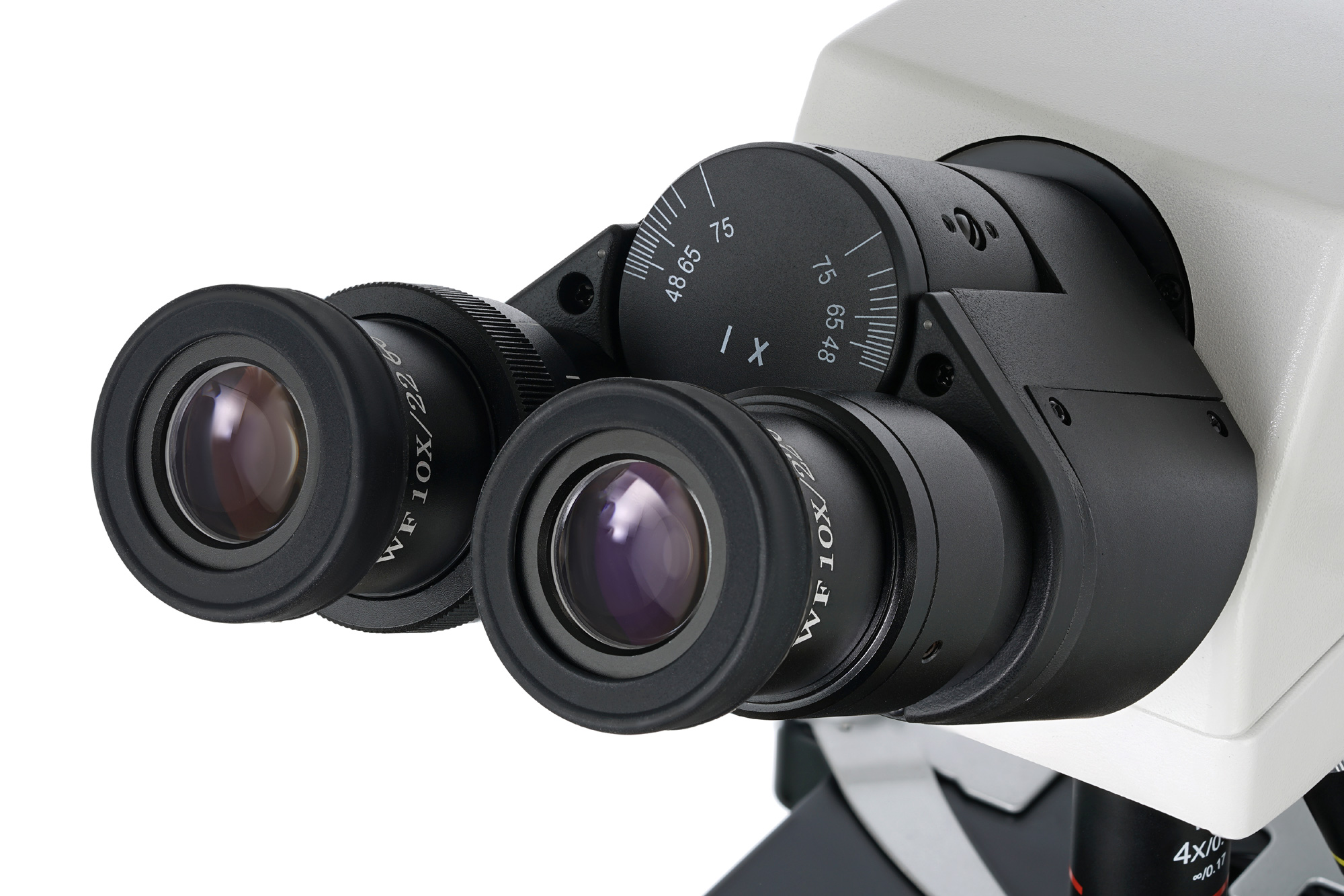 Mikroskop jest wyposażony w klasyczną głowicę dwuokularową nachyloną pod kątem 30°. Umożliwia prowadzenie obserwacji przy użyciu obojga oczu i zmniejsza zmęczenie mięśni karku podczas wielogodzinnej pracy. Głowicę można obracać w zakresie 360°, co jest niezwykle przydatne podczas pracy grupowej – preparat można wygodnie badać z dowolnego miejsca wokół mikroskopu. Okulary w zestawie mają powiększenie 10 razy, przekazują wyraźny obraz i mają regulację dioptrii.