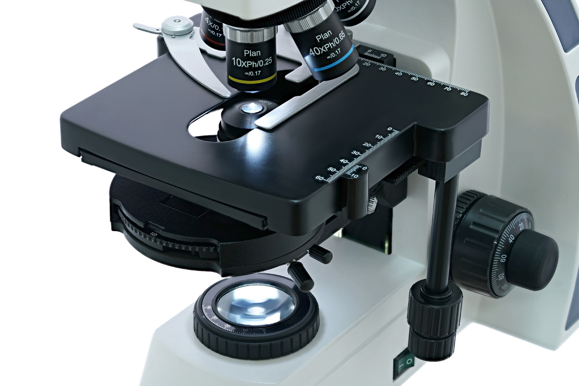 Obracając pokrętła zgrubnej i precyzyjnej regulacji ostrości można dostosować ostrość. Dwuwarstwowy stolik mechaniczny wyposażono w skalę mechaniczną. Stolik można regulować w dwóch płaszczyznach. Pod nim umieszczono kondensor kontrastowo-fazowy. Do oświetlania preparatów służy oświetlenie LED o mocy 5 W z regulacją jasności. Istnieje możliwość ustawienia oświetlenia według metody Köhlera.
