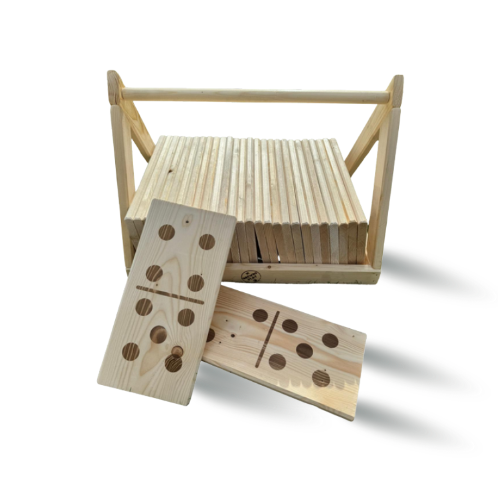 Drewniana gra giga domino w zestawie zawiera 28 klocków domino.