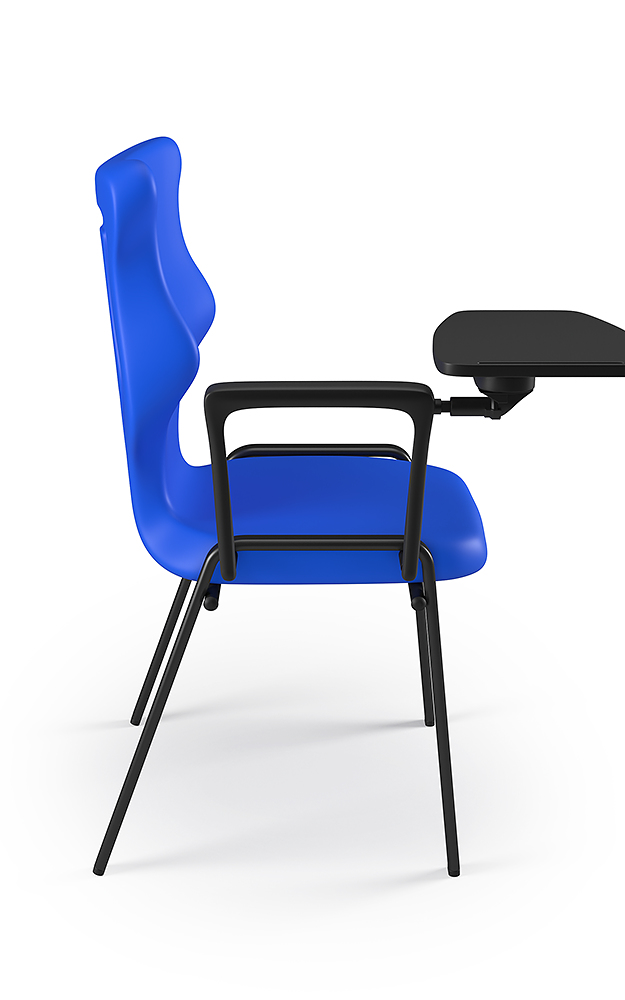 Krzesło wyposażone jest w funkcjonalny, składany pulpit, który ułatwia wygodne notowanie, pracę z laptopem czy korzystanie z materiałów dydaktycznych. Po złożeniu pulpit nie zajmuje dodatkowej przestrzeni, co pozwala na swobodne aranżowanie sali.