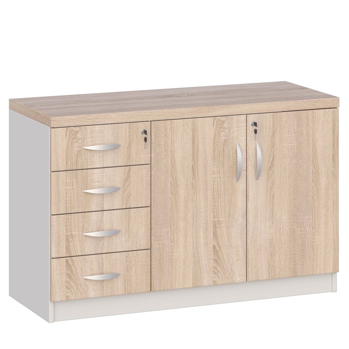 • Komoda wysokością dopasowana jest do biurek PREMIO. W połączeniu z biurkiem tworzy stanowisko narożne.
