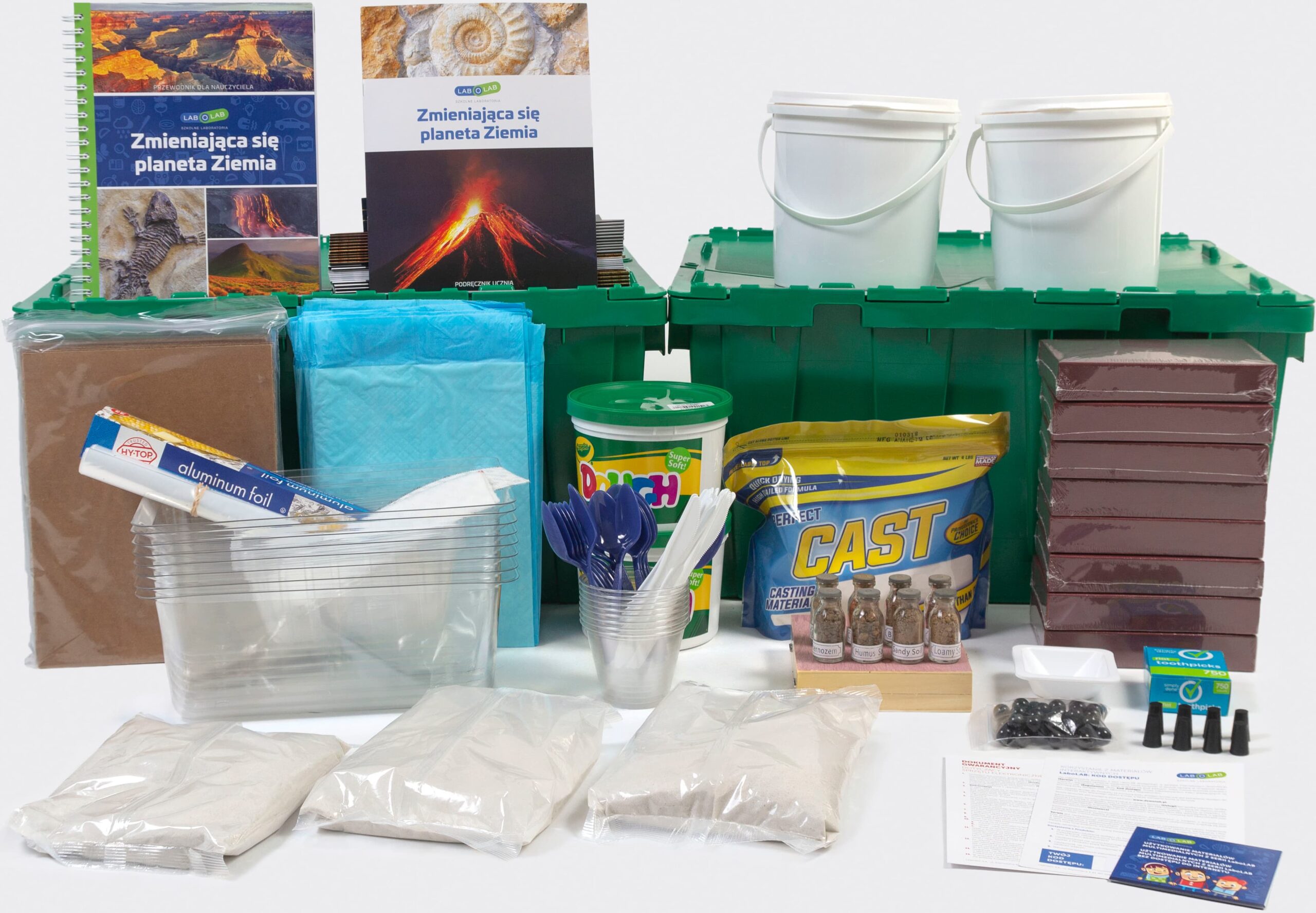 LaboLAB Geografia – Zmieniająca się planeta ziemia to moduł w którym są omawiane erupcje wulkanów oraz proces formowania się skał na skutek stygnięcia lawy. Uczniowie badają dostępne w zestawie próbki skał i porównują ich rodzaje. Ponadto wykonują symulację cyklu skalnego, aby przekonać się, jak poszczególne typy skał mogą zmieniać się w zależności od warunków. Tworzą model przebiegu erozji, wietrzenia i osadzania się materiału skalnego. Zmieniając działanie różnych czynników, na przykład poprzez dodanie “roślinności”, przekonują się, w jaki sposób erozja wpływa na formy ukształtowania terenu.