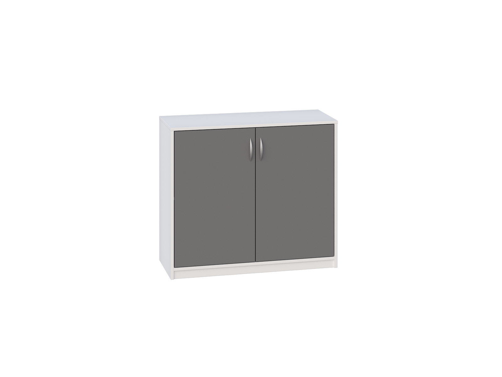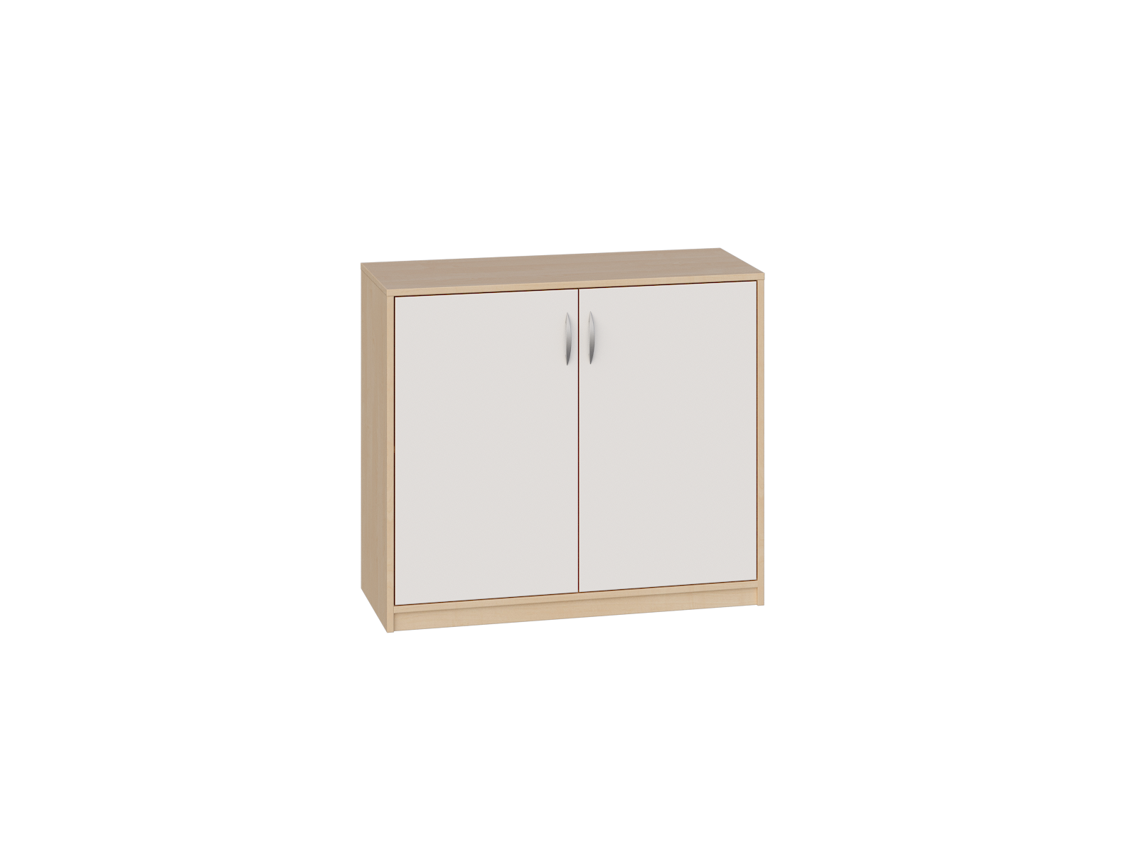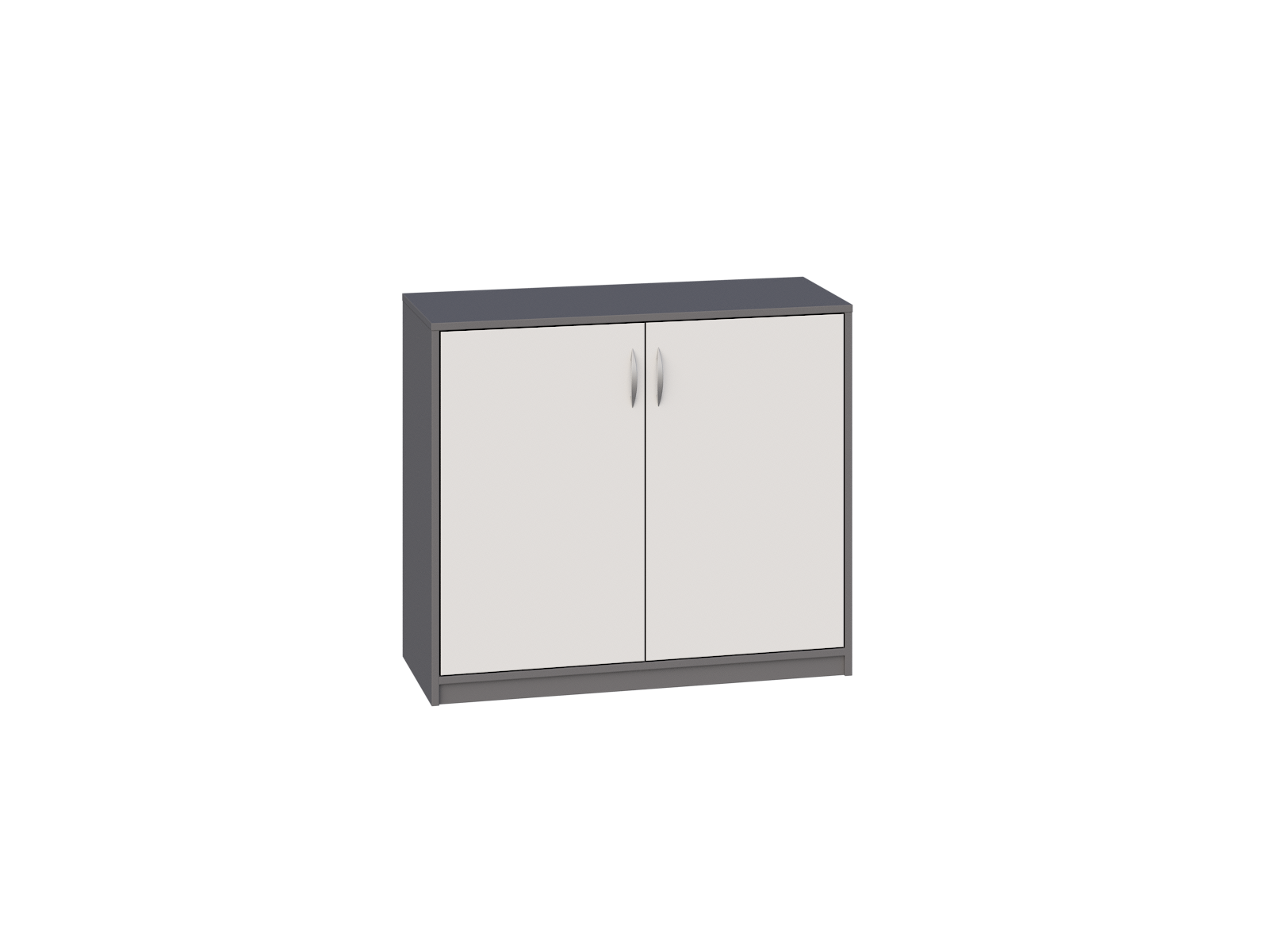 W górnej części znajduje się jedna duża półka, a dolną część stanowią dwie przestrzenie do przechowywania zamykane parą drzwi bez zamka.