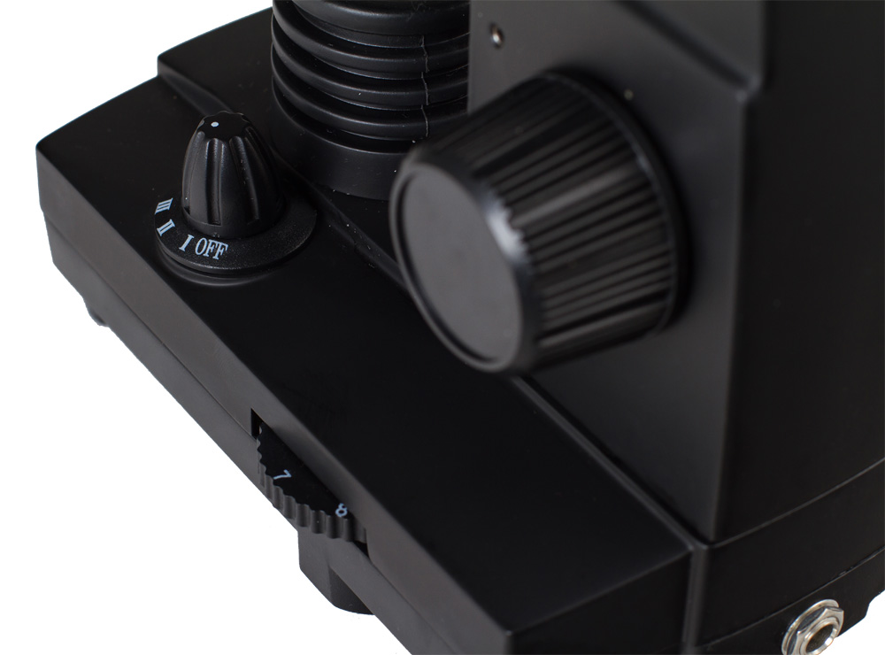 Stolik mikroskopu ze skalą Verniera pozwala przesuwać próbkę bez dotykania jej rękami. Ten model jest wyposażony w oświetlenie LED. Dolne źródło światła służy do obserwowania próbek przezroczystych w świetle przechodzącym, natomiast górne — do obserwowania próbek nieprzezroczystych w świetle odbitym. Pod stolikiem znajduje się dysk z 6 filtrami.