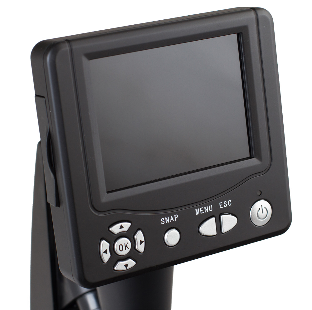 Obraz jest wyświetlany na kolorowym ekranie LCD o przekątnej 3,5″, dlatego ten przyrząd sprawdza się wyśmienicie podczas pracy grupowej. Ponadto daje on możliwość wykonywania zdjęć i nagrywania filmów przedstawiających obserwowane przedmioty, a także zapisywania ich na przyszłość.
