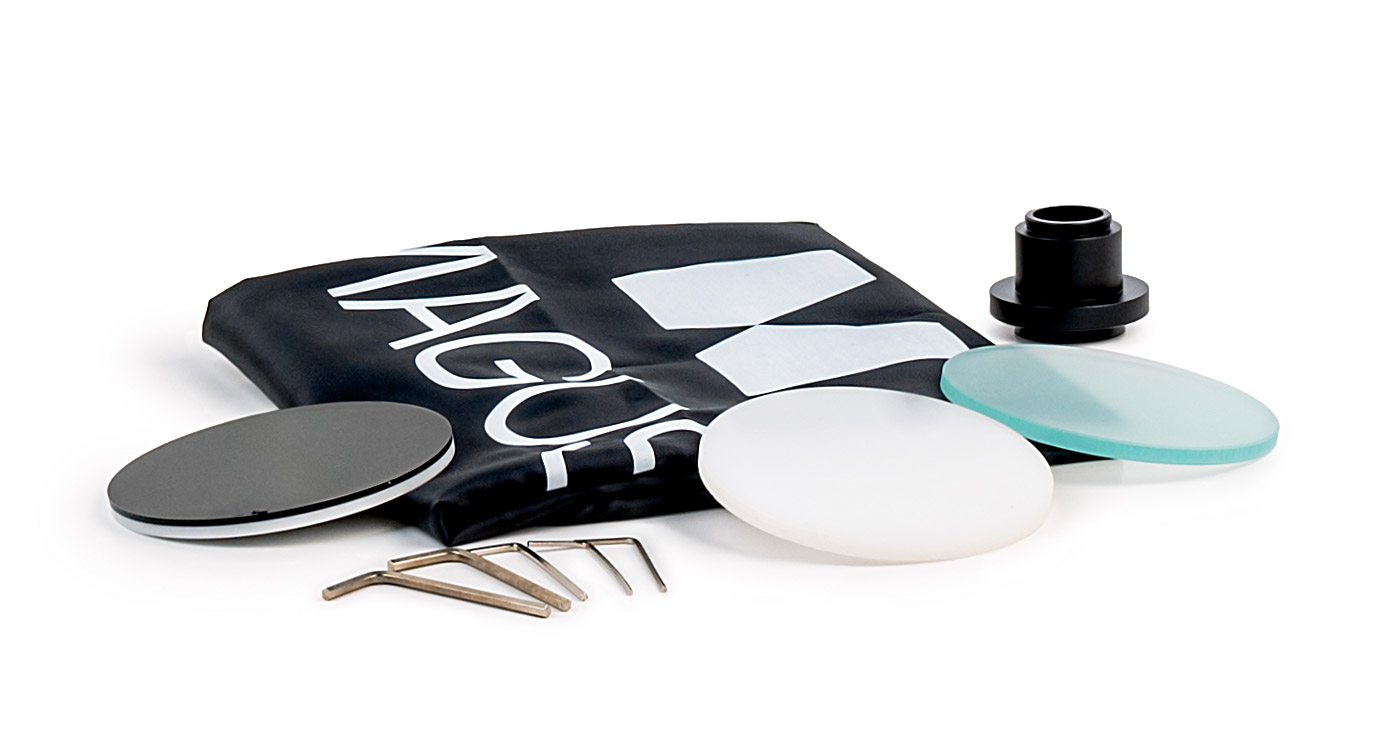 Na stoliku można zainstalować jedną z dołączonych płytek: dwustronną czarno-białą, białą lub przezroczystą. Pierwsza płytka służy do obserwacji nieprzezroczystych obiektów i zapewnia wysoki kontrast obrazu. Preparaty o ciemnych kolorach są badane na stronie białej, a preparaty o jasnych kolorach – na stronie czarnej. Płytki biała i przezroczysta są używane do obserwacji półprzezroczystych i przezroczystych preparatów i ułatwiają uzyskanie maksymalnej jasności i równomiernego oświetlenia obszaru roboczego.
