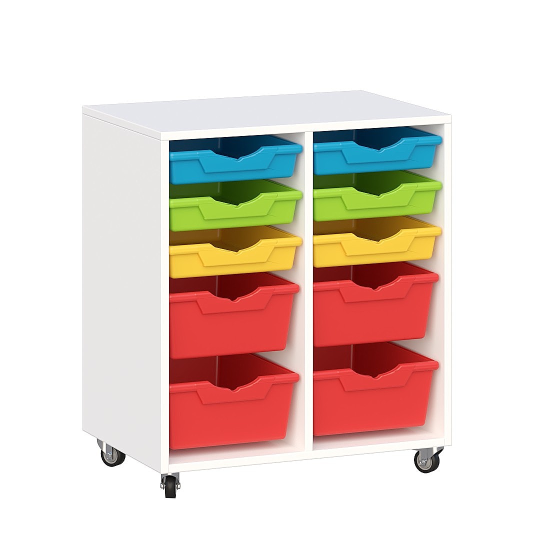 • Mobilny regał z pojemnikami.