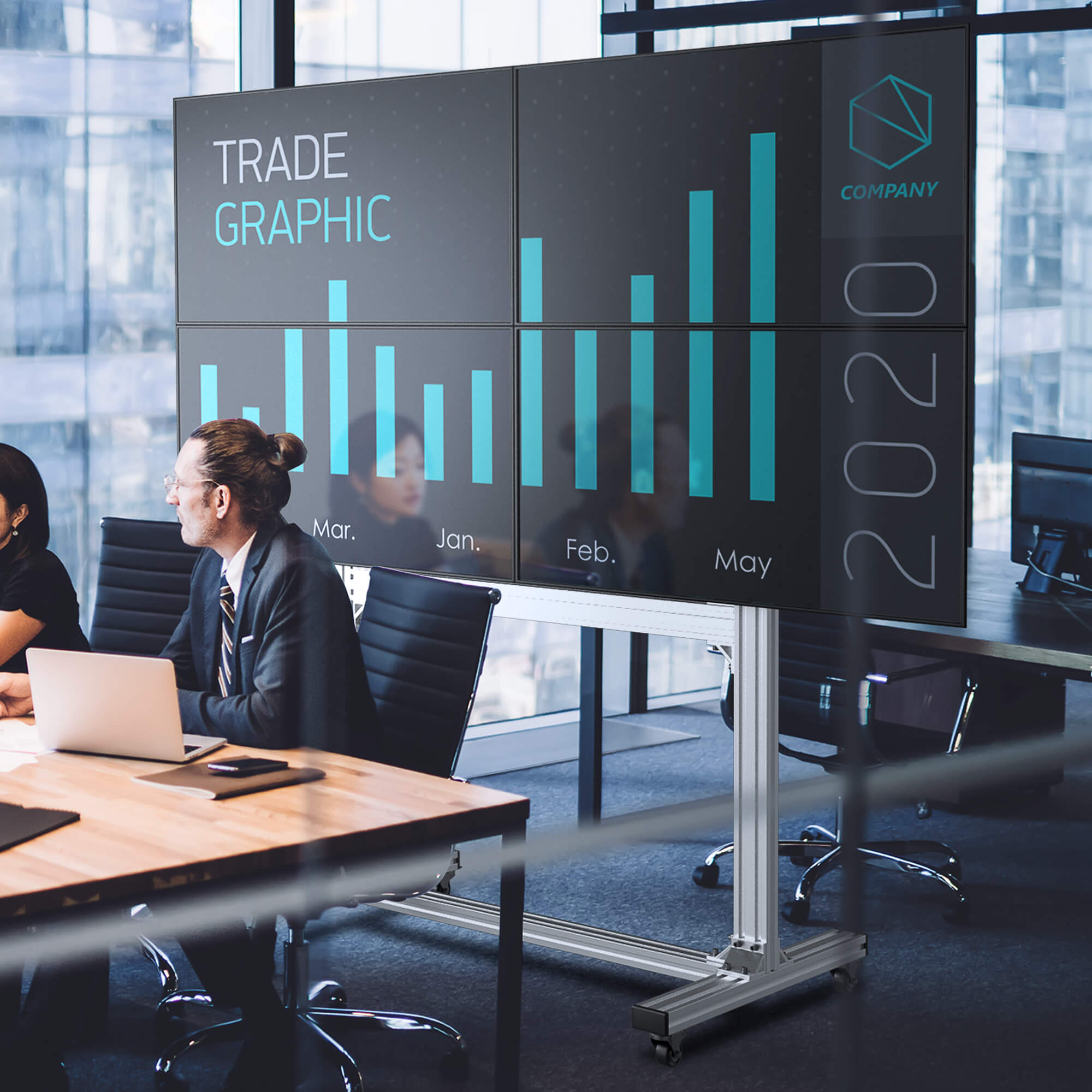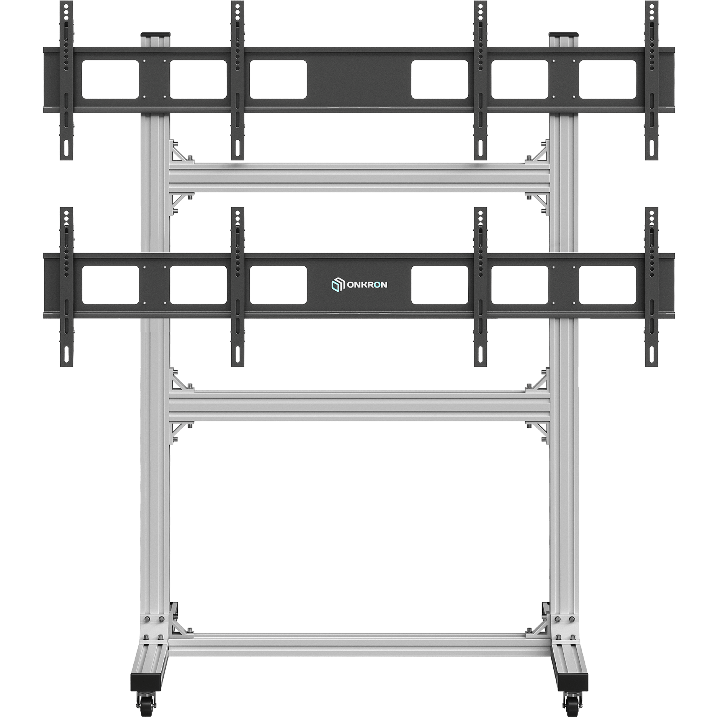Mocna i wytrzymała rama wykonana z aluminium może z łatwością utrzymać do 200 kilogramów łącznej wagi (każdy ekran waży maksymalnie 50 kilogramów).