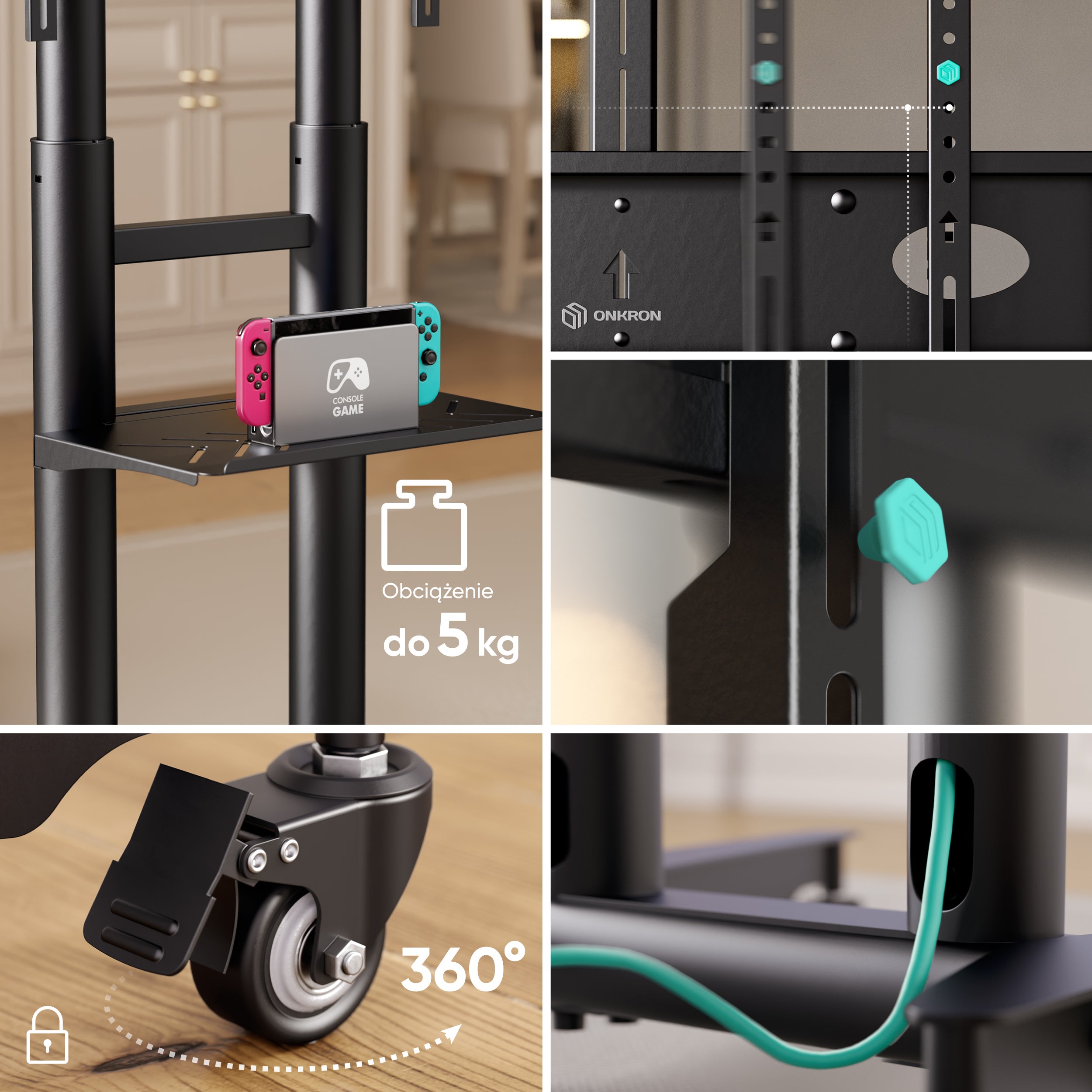 AI - O produkciePosłuchaj O ONKRON TS1380 Czarny VESA 300×100 – 800×500 Maks. udźwig 70 kg Materiał Stal, plastyk …