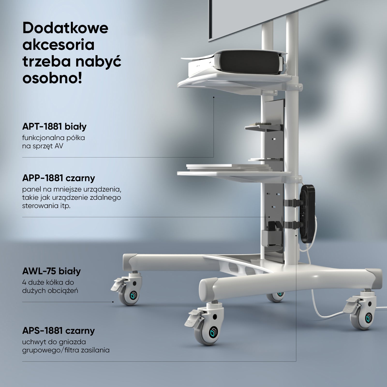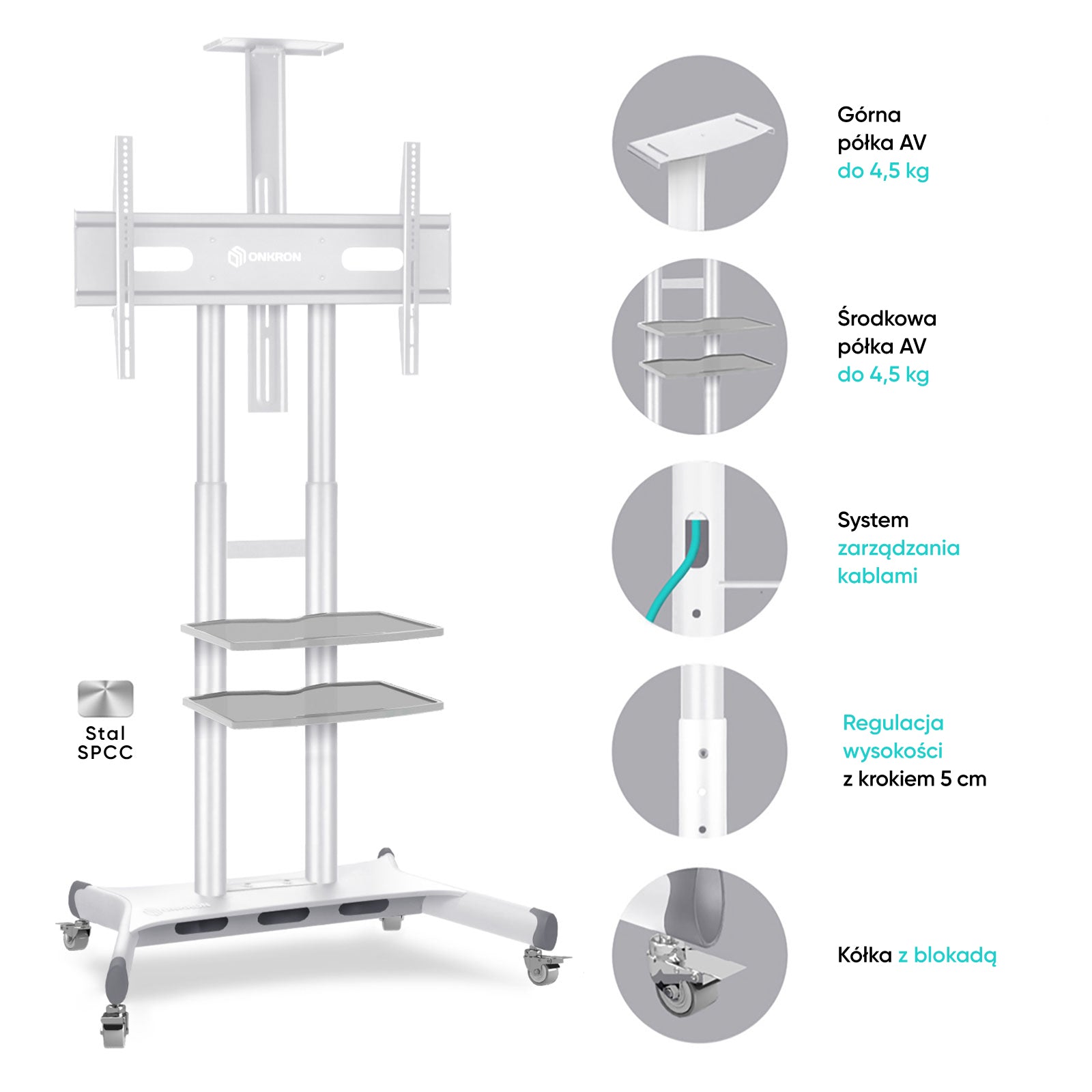 Mobilny stojak TV  dla 50"-86" maks 91 kg, biały TS1881