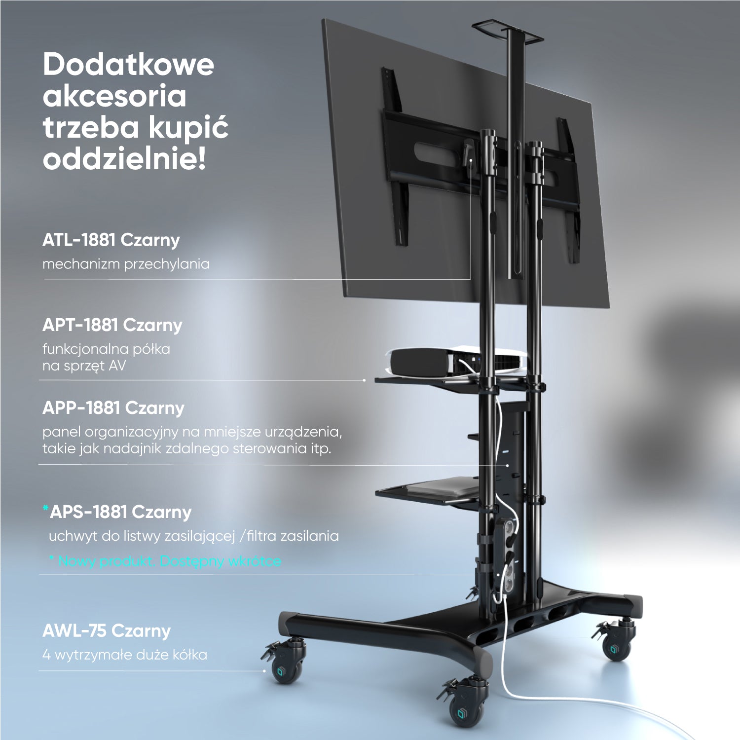 AI - O produkciePosłuchaj ✔️ PODWÓJNY STOJAK DO TV: mobilny stojak do telewizora TS1881 i zestaw podwójnych uchwytów VESA ADV-1881…