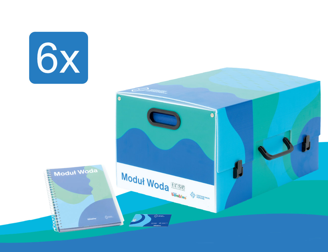 Moduł WODA dostępny jest również w pakietach: 6 sztuk oraz 10 sztuk. W celu uzyskania zamierzonych efektów pracy z modułem WODA, Centrum Nauki Kopernik rekomenduje korzystanie z 1 zestawu przez maksymalnie cztery osoby.