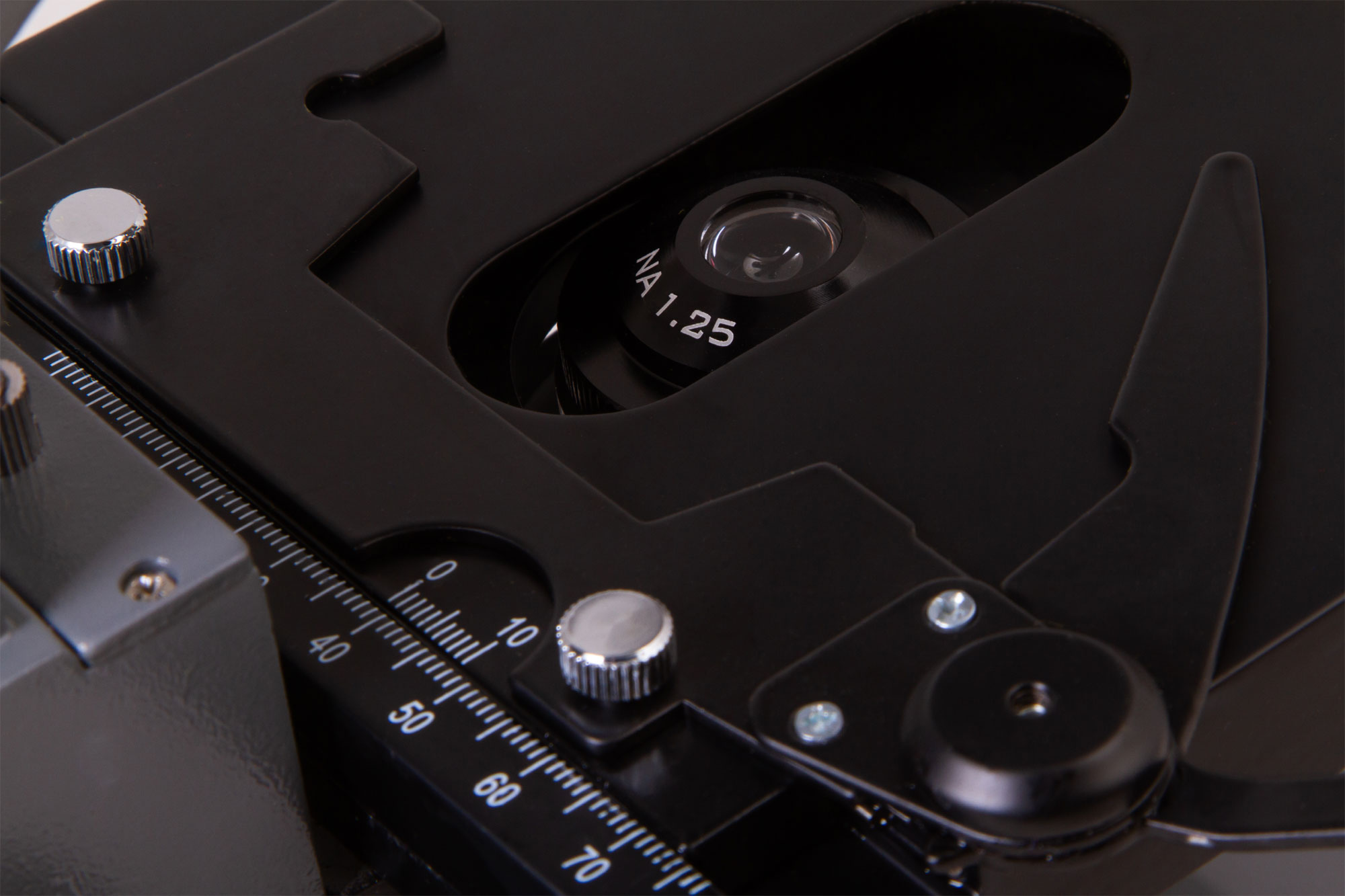 Preparaty są mocowane do stolika. Stolik można regulować w dwóch płaszczyznach. Przy użyciu skali mechanicznej można precyzyjnie ustawić preparaty pod obiektywem. Ostrość obrazu jest regulowana za pomocą współosiowego mechanizmu do zgrubnej i precyzyjnej regulacji ostrości.