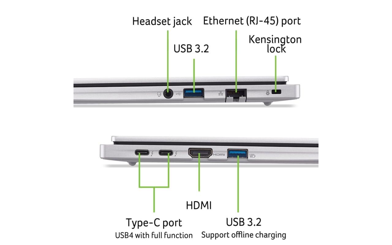1x HDMI, 1x RJ-45, 1x Audio jack, 2x USB 3.2, 2x USB Type-C, czytnik kart microSD