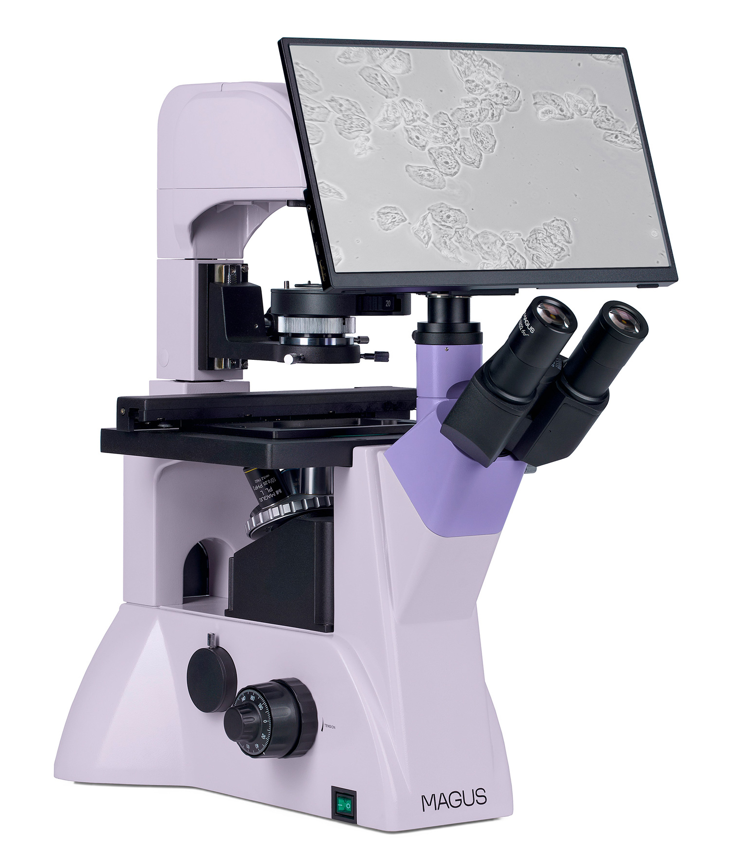 MAGUS Bio VD350 LCD to odwrócony mikroskop biologiczny, który służy do badania barwionych i niebarwionych preparatów w naczyniach laboratoryjnych – szalkach Petriego, kolbach, płytkach. Wysokość naczyń może wynosić 55 mm, a po przechyleniu statywu oświetlacza – do 165 mm. Grubość dna zgodnych naczyń może wynosić do 1,2 mm. Mikroskop, który wykorzystuje techniki mikroskopii jasnego pola i mikroskopii kontrastu fazowego w świetle przechodzącym, jest wyposażony w tubę głowicy trójokularowej/gniazdo boczne do montażu kamery cyfrowej i monitora. Jest on używany do rutynowych prac laboratoryjnych i badawczych, a także do nauczania.