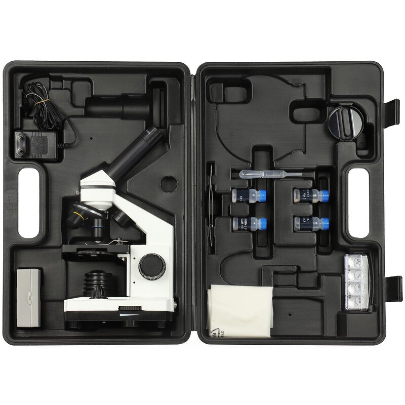 Użycie mikroskopu nie jest zarezerwowane tylko dla naukowców lub zaawansowanych przyrodników. Każdy, kto jest ciekawy natury powinien mieć dostęp do mikroskopu. Za pomocą modelu Omegon VisioStar od razu dostajesz taką możliwość. Na przykład by błyskawicznie przyjrzeć się preparatowi. Będziesz zadziwiony jak głęboko w komórki możesz wniknąć za pomocą tego świetnego, ale zaskakująco taniego mikroskopu.