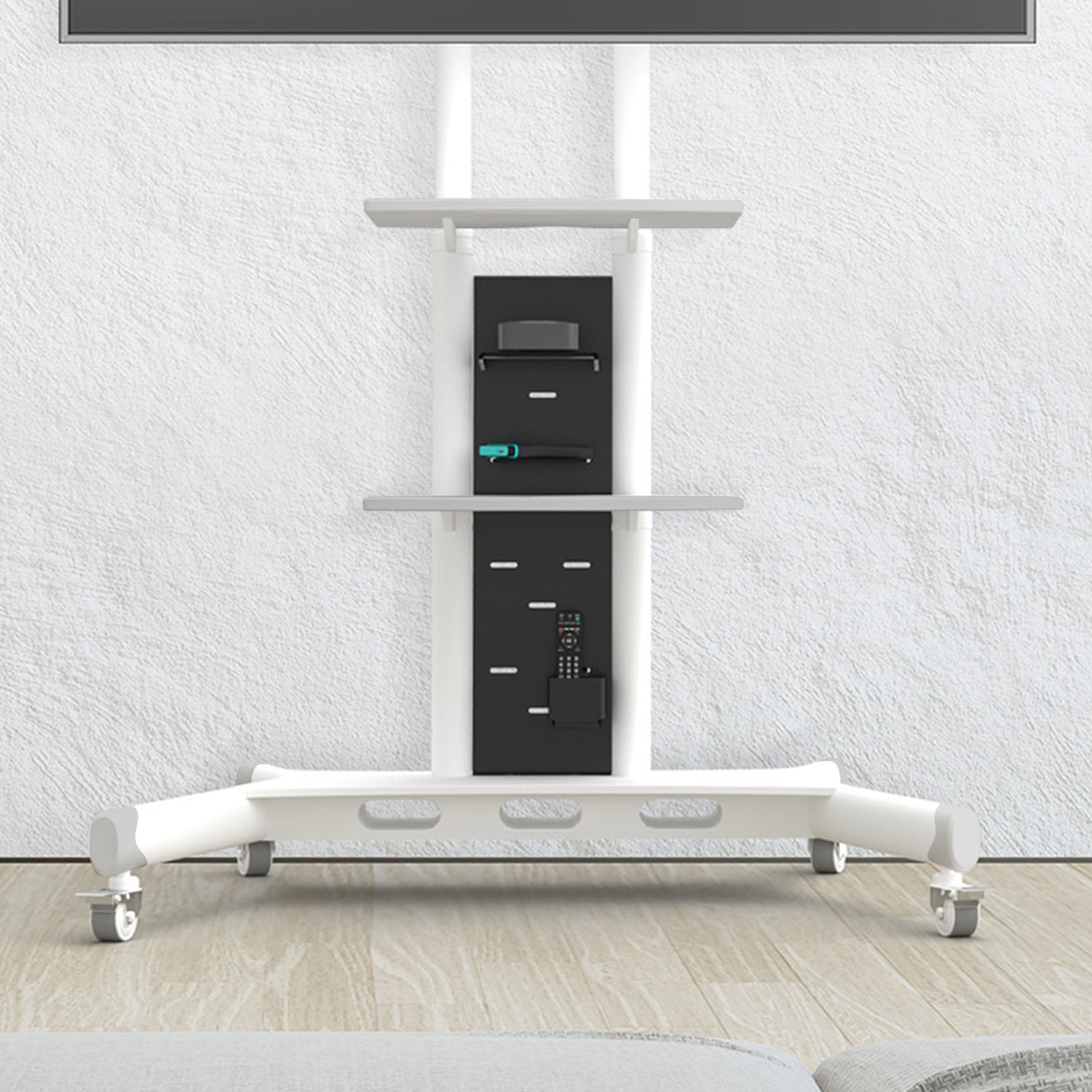 • Możesz używać tego panelu w dowolny sposób i nie będzie on kolidował z głównymi środkowymi półkami podstawy telewizora ONKRON.
