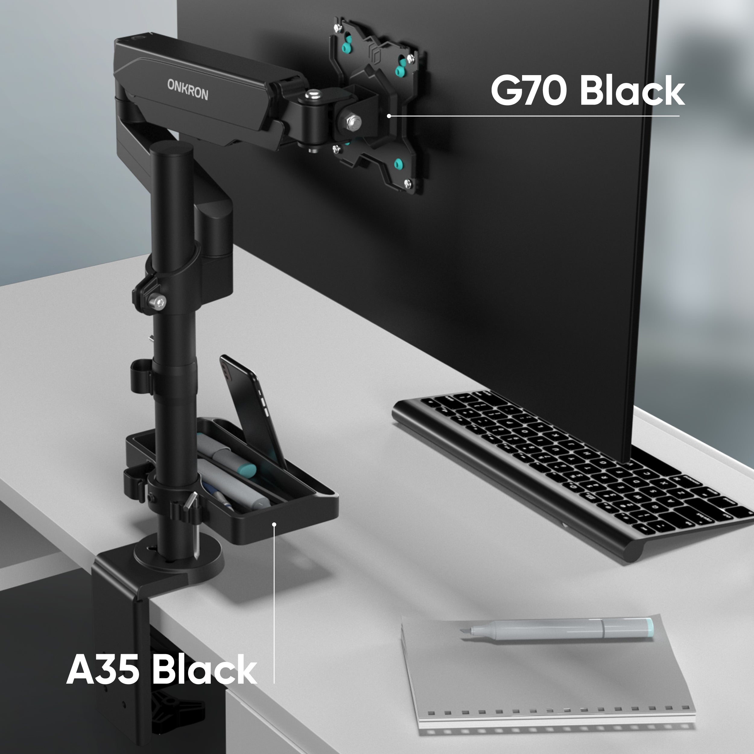 ONKRON A35 to półka organizacyjna kompatybilna z następującymi produktami ONKRON: D101, D121, D221, D208, G70, G140, G280, PT2, PT3, TS1220, TS5065. Półka z organizerem może służyć jako stacja do ładowania telefonu komórkowego lub do umieszczania długopisów, ołówków, karteczek samoprzylepnych itp. Jest to sprytny dodatek do konfiguracji ONKRON AV.