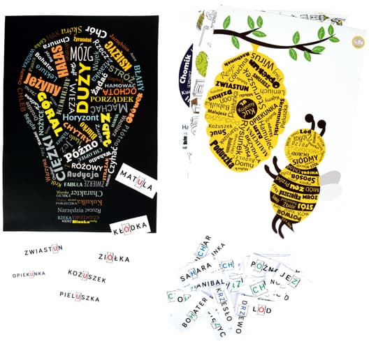 Pomoc zawiera 4 plansze i około 320 kartoników (80 do każdej planszy). Trzy plansze zawierają materiał z konkretną trudnością ortograficzną: U/Ó, CH/ H, RZ/Ż, a czwarta to wszystkie trudności ortograficzne w jednym. Na kartonikach znajdują się wyrazy, na których zaznaczone są trudności ortograficzne, co dodatkowo utrwala i ułatwia zapamiętywanie ich poprawnej pisowni. Zadaniem dziecka jest znalezienie wylosowanego wyrazu z daną trudnością ortograficzną na odpowiedniej planszy. Kartoniki mogą być również wykorzystywane do segregowania wyrazów adekwatnie do wskazania, np. do danej trudności, wymienności itd.