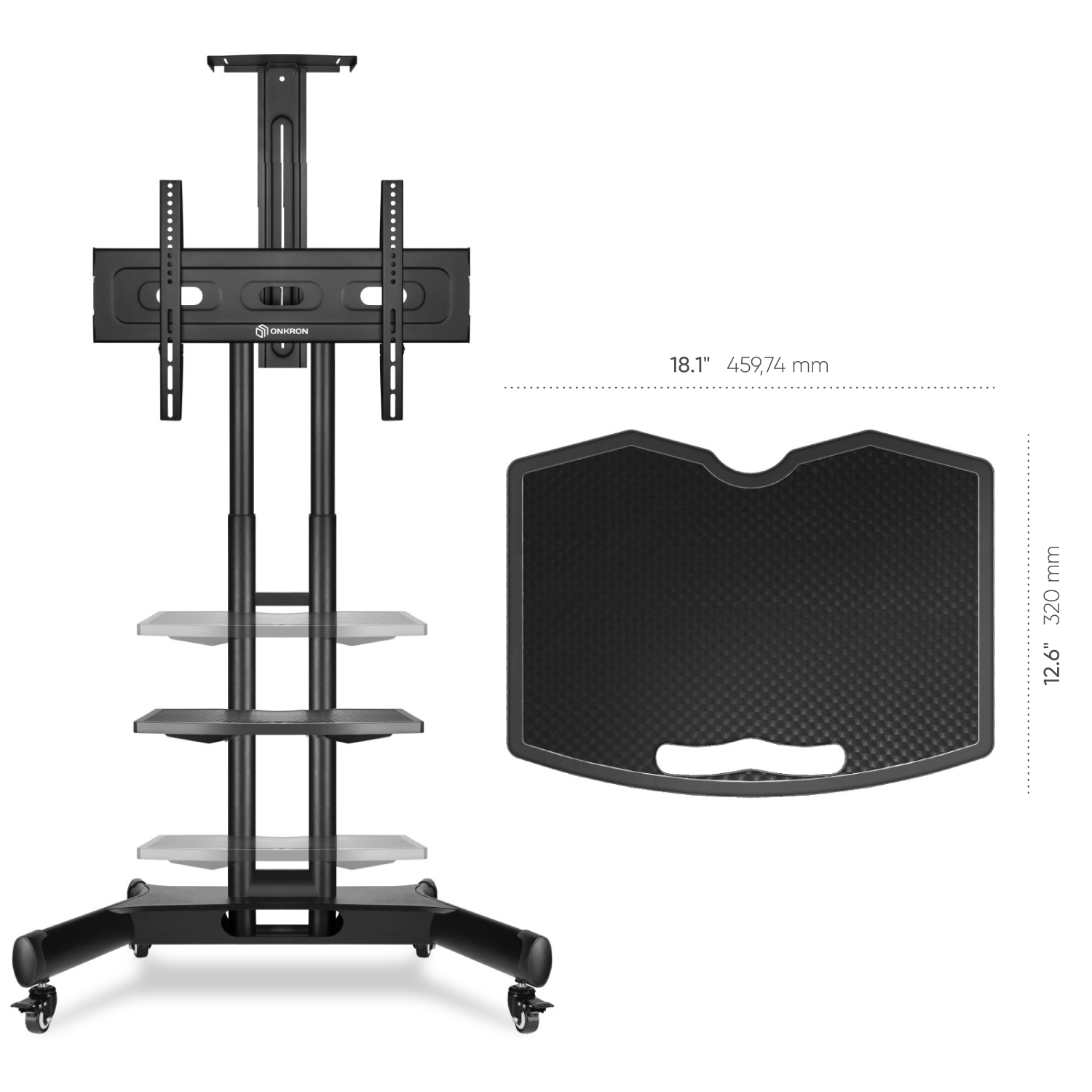 - APT1551to dodatkowa półka do mobilnego stojaka telewizyjnego ONKRON TS1881, zwiększająca przestrzeń użytkową Twojego stojaka.