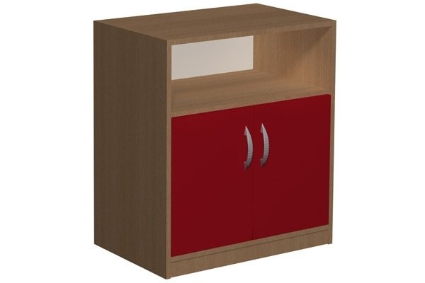 • Szafka posiadająca 3 szerokie półki, w tym 2 dolne zamykane dużymi, dwuskrzydłowymi drzwiczkami.