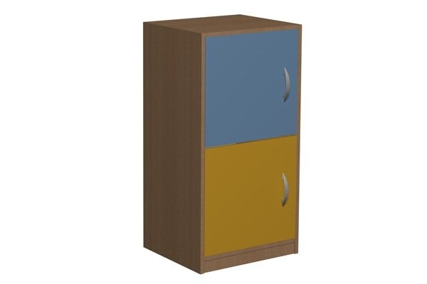 - Szafka posiadająca dwie skrytki zamykane osobnymi, jednoskrzydłowymi drzwiczkami.