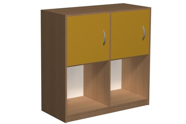 - Szafka posiadająca 4 skrytki, w tym 2 górne zamykane osobnymi, jednoskrzydłowymi drzwiczkami.