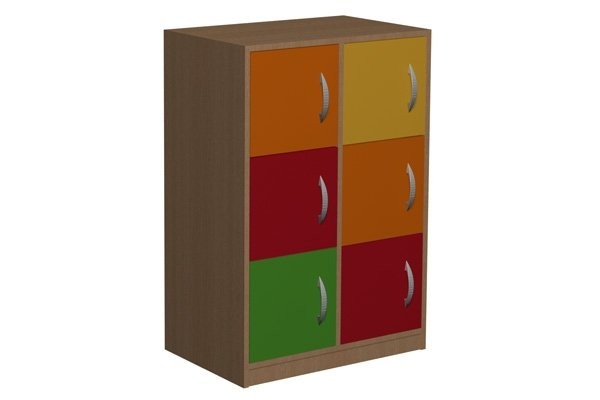 - Szafka posiadająca 6 skrytek zamykanych osobnymi, jednoskrzydłowymi drzwiczkami.