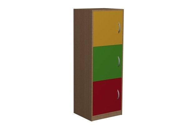- Szafka posiadająca 3 skrytki zamykane osobnymi, jednoskrzydłowymi drzwiczkami.