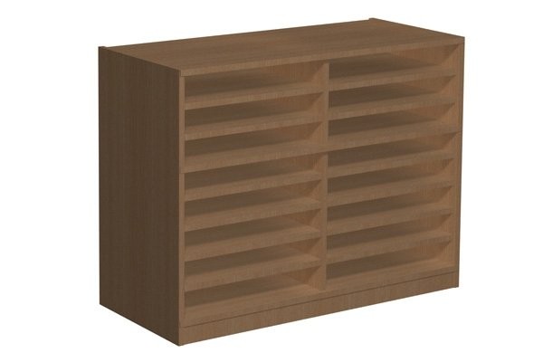 - Szafka posiadająca 16 niskich skrytek w 2 kolumnach.