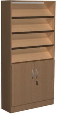 • W górnej części 4 stałe skośne półki do eksponowania książek, czasopism lub ulotek.