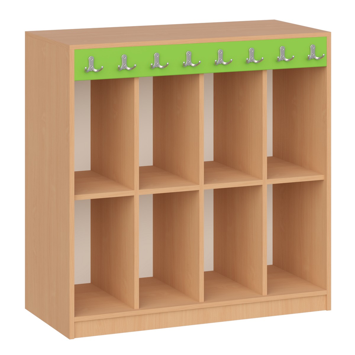 • Regał posiada również listwę z metalowymi haczykami, gdzie dzieci podczas zabaw na świetlicy mogą odwiesić swoje okrycie wierzchnie.