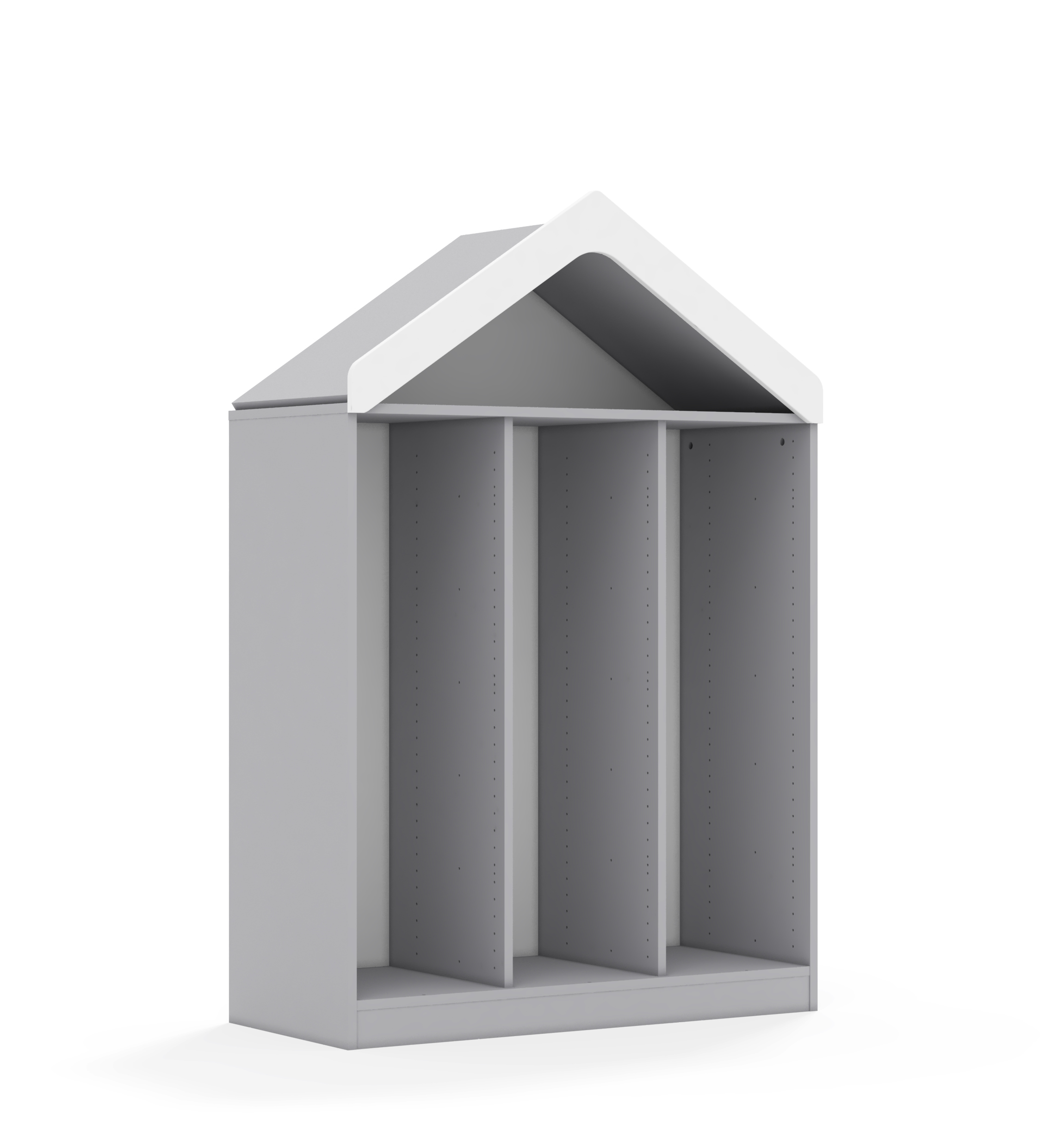 Wymiary zewnętrzne mebla wynoszą 1049x466x1575. Mebel 3-kolumnowy bez półek z daszkiem.