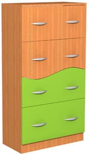 - Fronty szuflad w kształcie fali. Dwa fronty wykonane są z płyty kolorowej – kolor do wyboru.