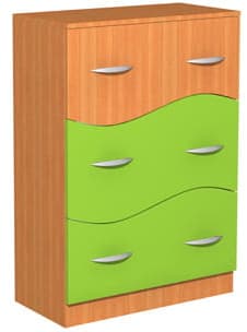 • Fronty szuflad w kształcie fali. Dwa fronty wykonane są z płyty kolorowej – kolor do wyboru.