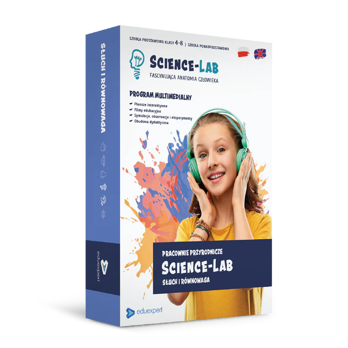 Science-Lab. Fascynująca anatomia człowieka. Słuch i Równowaga to przyrodniczy, multimedialny zestaw edukacyjny z oferty Science-Lab. Interaktywny produkt ma za zadanie przedstawienie ucha jako narządu Słuchu i Równowagi.
