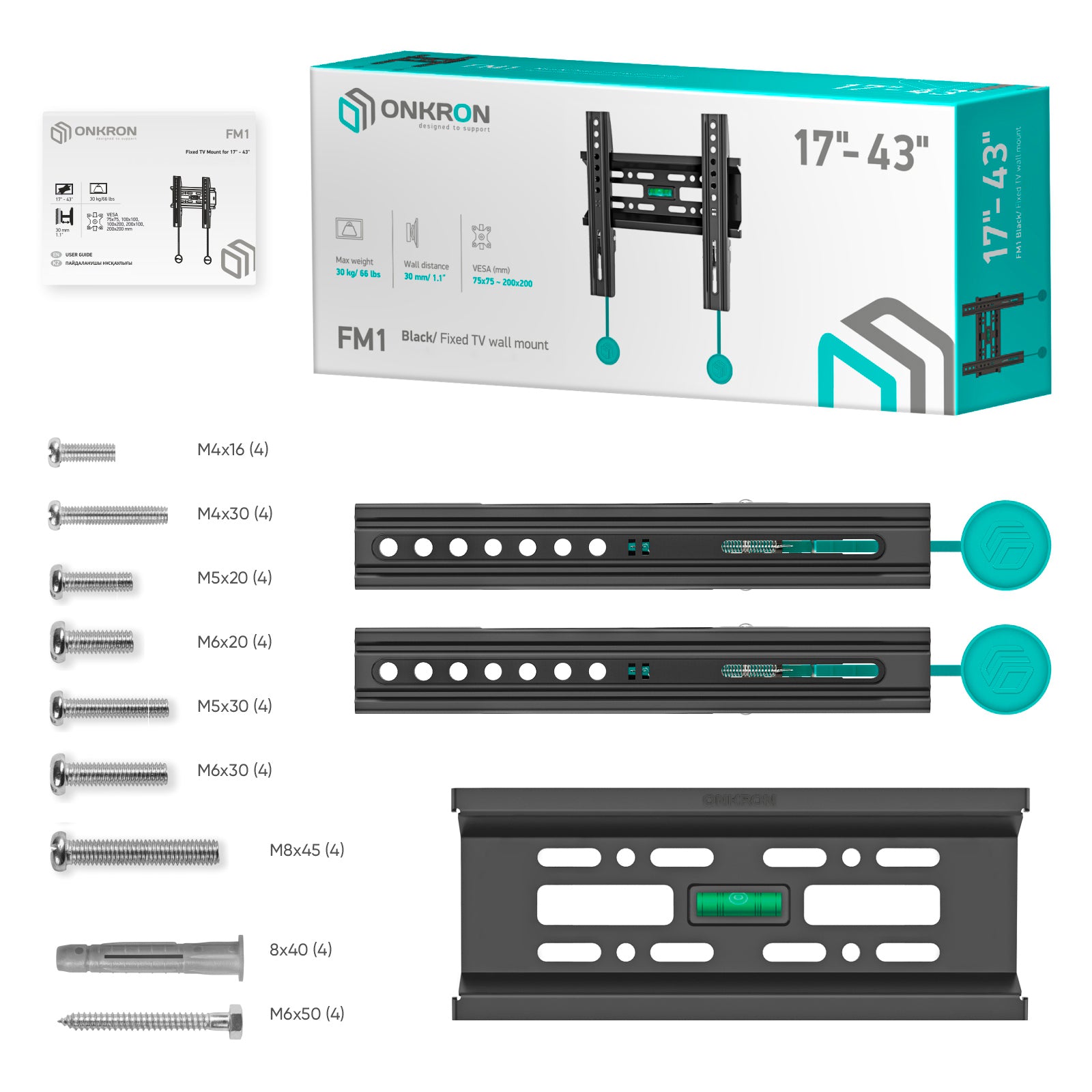 - Uchwyt ścienny do telewizora jest przeznaczony do płaskich ekranów LED, LCD, OLED o przekątnej od 17″ do 43″.
