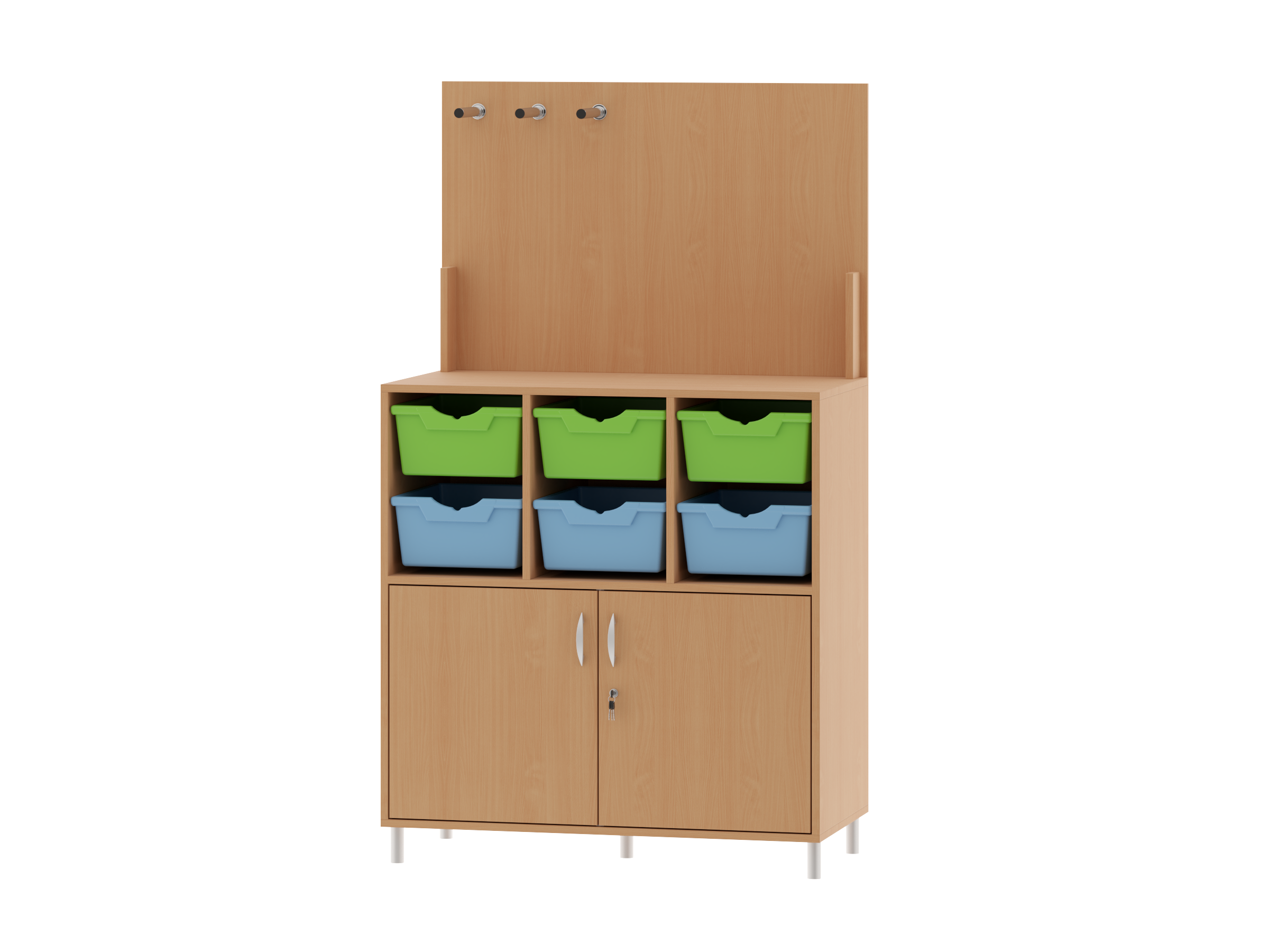 - Pod blatem 6 wysuwanych, pojemnych plastikowych pojemników do przechowywania.