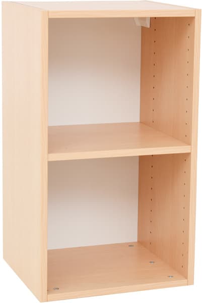 Szafki wykonane z białej lub klonowej płyty laminowanej o gr. 18 mm. Można uzupełniać je drzwiczkami.