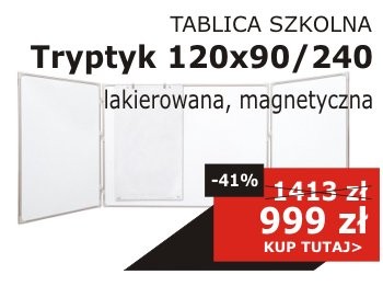 Powierzchnia lakierowana, suchościeralna, o właściwościach magnetycznych. Rama aluminiowa w kolorze srebrnym. Rozmiar: 120×90/240.