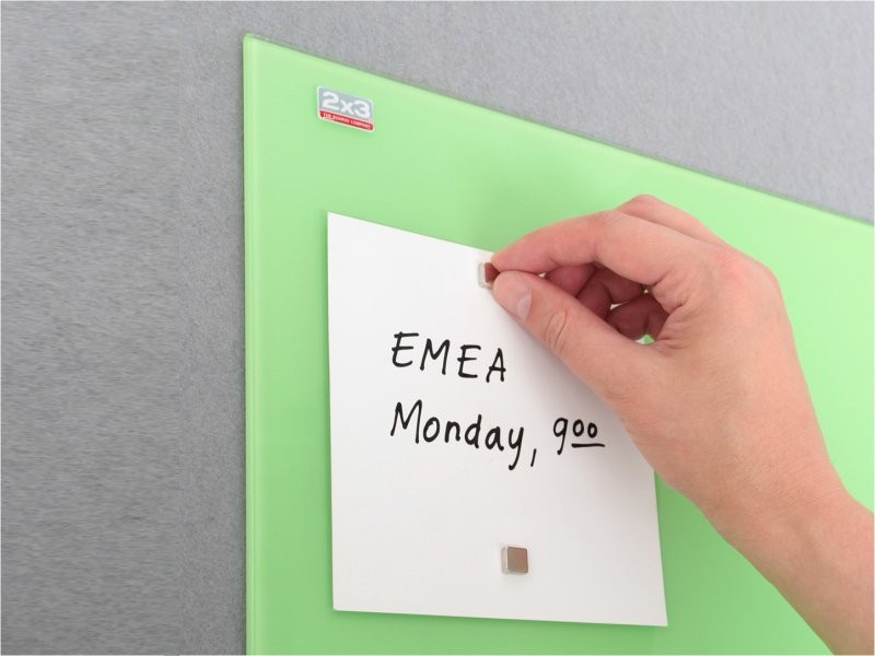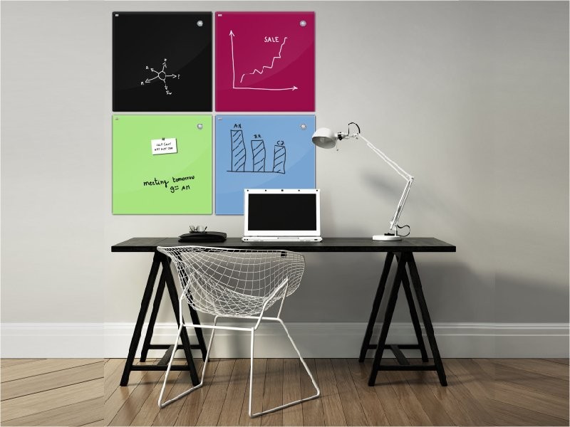 Tablice szklane magnetyczne to nienaganny design, nasycone kolory oraz estetyczne wykonanie. Świetnie nadają się do biura, restauracji, kuchni, holu, a także salonu i łazienki. Tablica składa się z tafli szkła (bezpieczne szkło ESG*, pokryte od spodu warstwą farby) i zespojonej z nią na całej powierzchni (za pomocą kleju polichloroprenowego) blachy ocynkowanej; w przypadku tablic o rozmiarach 45  x  45, 60 x 40 i 80 x 60 cm blacha została wyposażona w otwory montażowe wyprofilowane w jednorodnym materiale, tablice w pozostałych rozmiarach nie posiadają otworów, montowane są za pomocą specjalnych metalowych zawieszek. Dzięki zaokrąglonym narożnikom są bezpieczne w użytkowaniu. Powierzchnia suchościeralna pozwala na tradycyjne prowadzenie notatek, tablice mogą być również bardzo ciekawym elementem wystroju każdego wnętrza. Bardzo łatwy i szybki montaż.