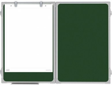 Wysokiej jakości tablica rozkładana kredowa zielona z powierzchnią lakierowaną o właściwościach magnetycznych. Rama wykonana z profilu aluminiowego UKF w kolorze srebrnym, wykończona eleganckimi, popielatymi narożnikami. Tył tablicy wzmocniono blachą ocynkowaną, która zapewnia jej stabilność i chroni przed wilgocią oraz wyginaniem. Dodatkowo produkt posiada 2 uniwersalne uchwyty do zawieszenia bloku oraz wygodną półkę na całej szerokości, która zmieści wszelkiego rodzaju przybory niezbędne podczas prezentacji.