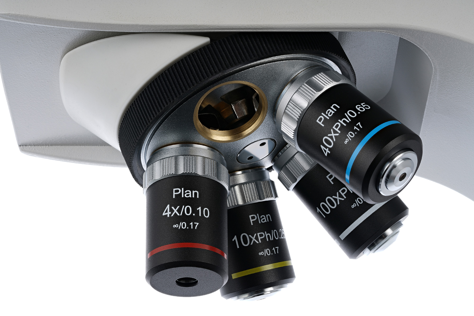 - Kontrastowo-fazowe planarno-achromatyczne obiektywy z korekcją do nieskończoności: o powiększeniach 4, 10, 40 i 100 razy (olejek immersyjny) z powłoką fungistatyczną