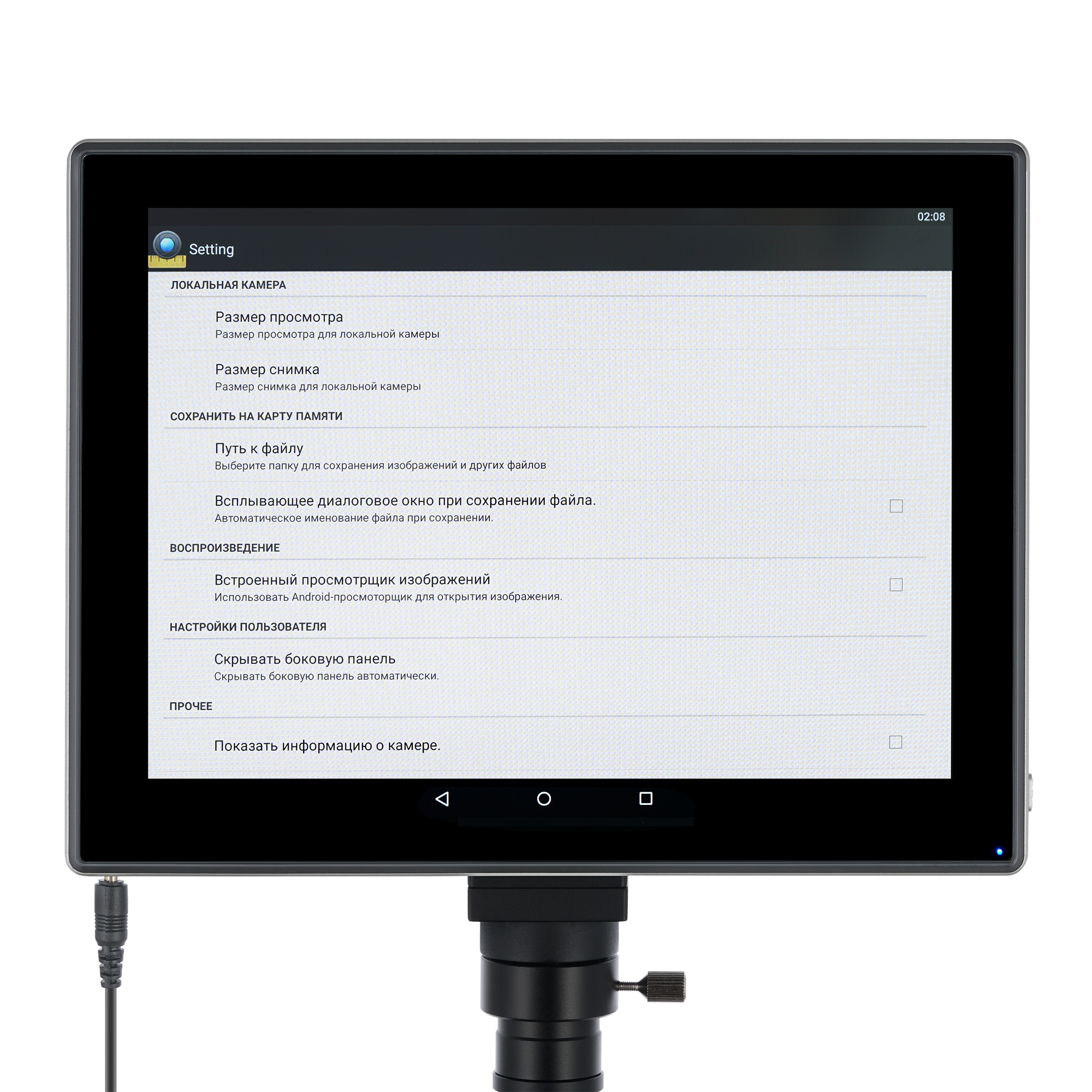 Kamera wyświetla obraz na wbudowanym ekranie i nie ma potrzeby patrzenia przez okulary. Praca w laboratorium jest przez to łatwiejsza i bardziej praktyczna. Pozwala to również zmniejszyć zmęczenie oczu i napięcie mięśni pierścienia rotatorów. Ponadto można do niej podłączyć dodatkowe akcesoria: pamięć zewnętrzną, słuchawki, mysz komputerową itp. Głowica trójokularowa obraca się wokół własnej osi w zakresie 360°, a element optyczny jest nachylony pod wygodnym kątem 30°. Oprogramowanie umożliwia dostosowanie rozmiaru, jasności i kontrastu obrazu, czasu ekspozycji i balansu bieli, kalibrację kamery oraz obiektywów i pomiar preparatów lub struktur (dostępnych jest kilka jednostek miary). Ponadto program może służyć do wykonywania analizy cząstek.