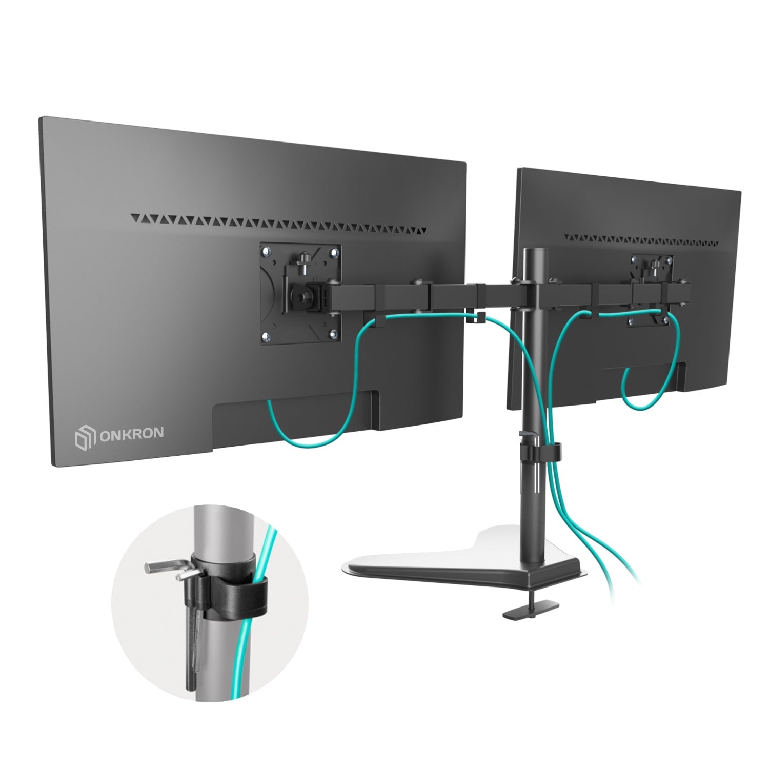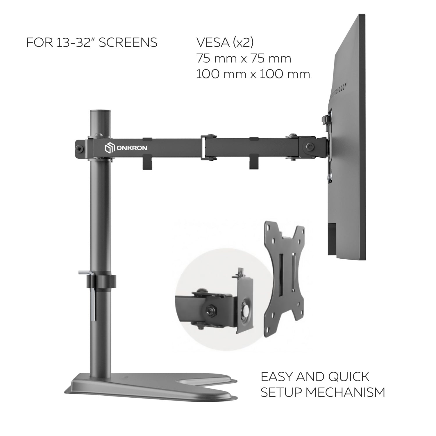 • Uchwyt wolnostojący ONKRON D221FS z regulacją wysokości na dwa monitory do ekranów o przekątnej od 13 do 32 cali ważących do 8 kg każdy